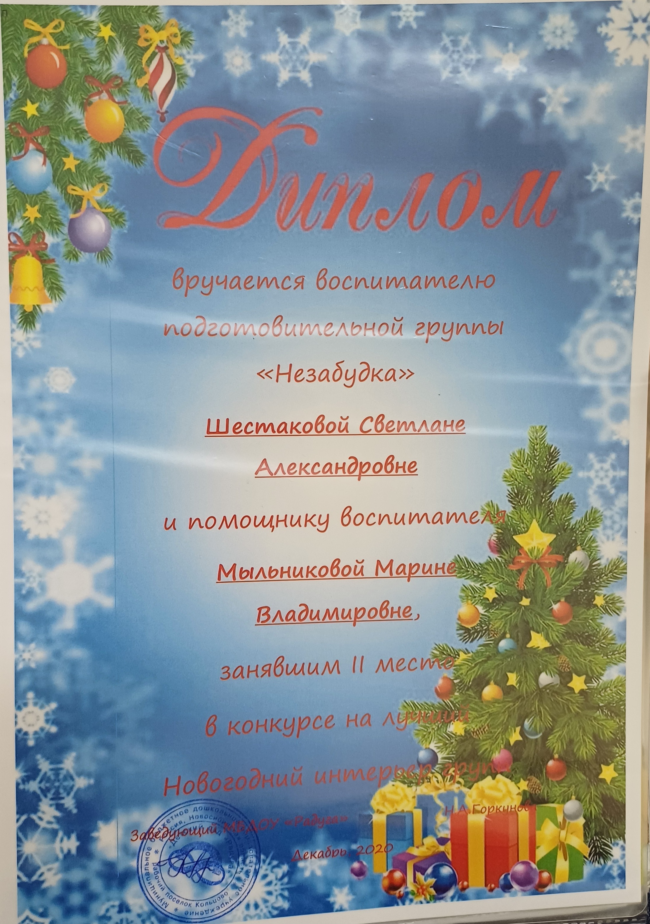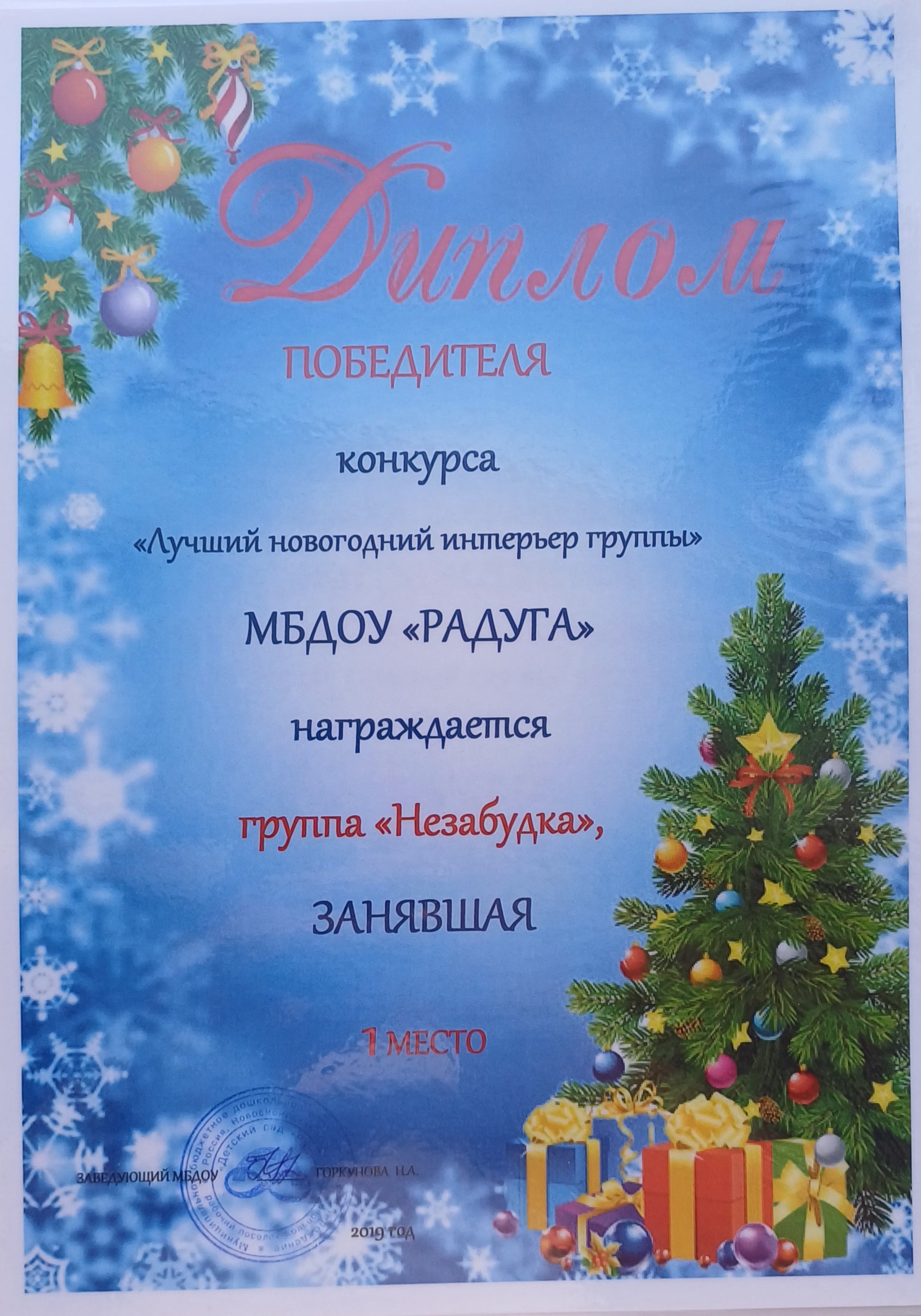 Диплом победителя конкурса "Лучший новогодний интерьер группы"