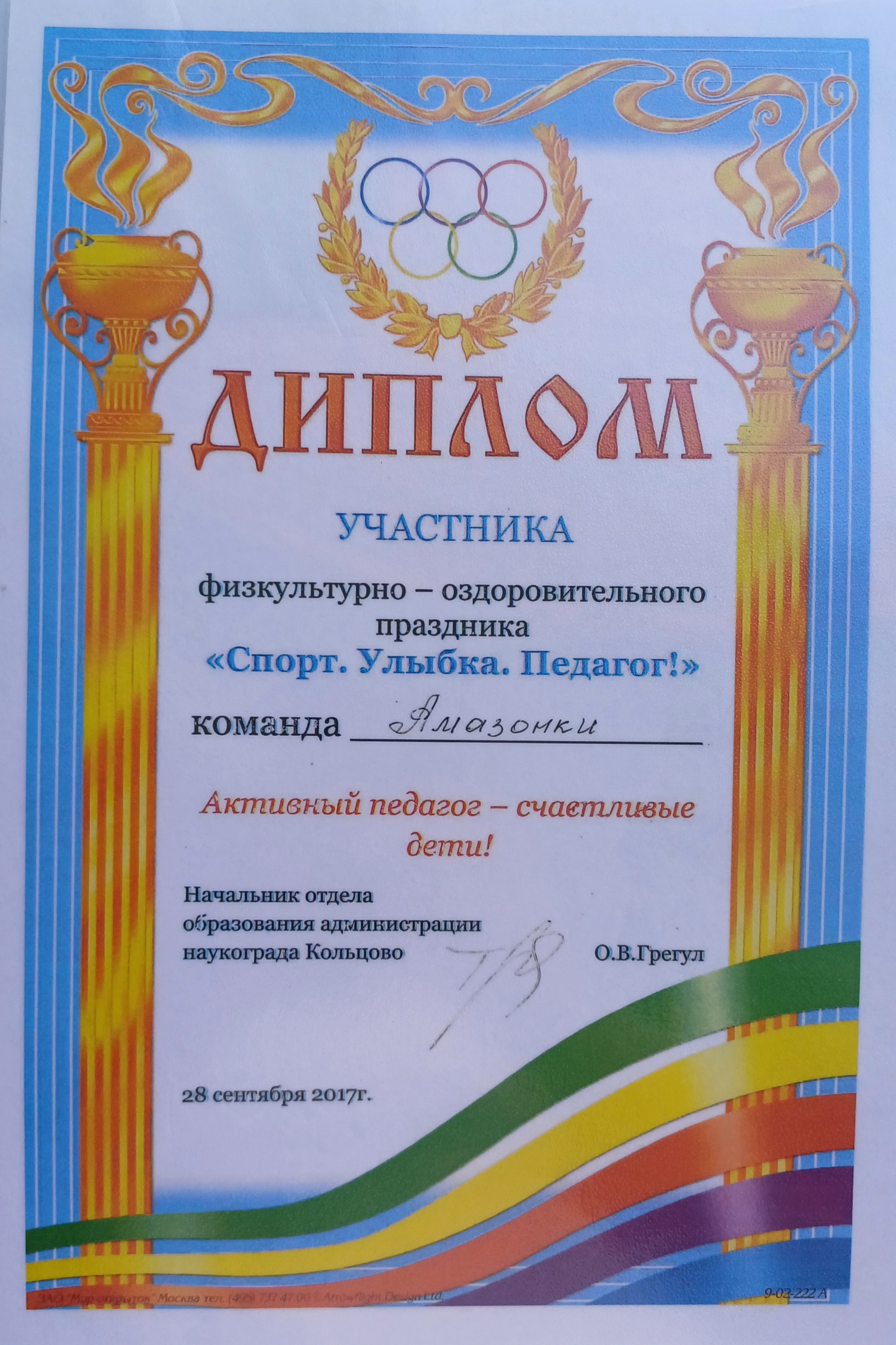 Диплом участника физкультурно-оздоровительного праздника "Спорт.Улыбка. Педагог"