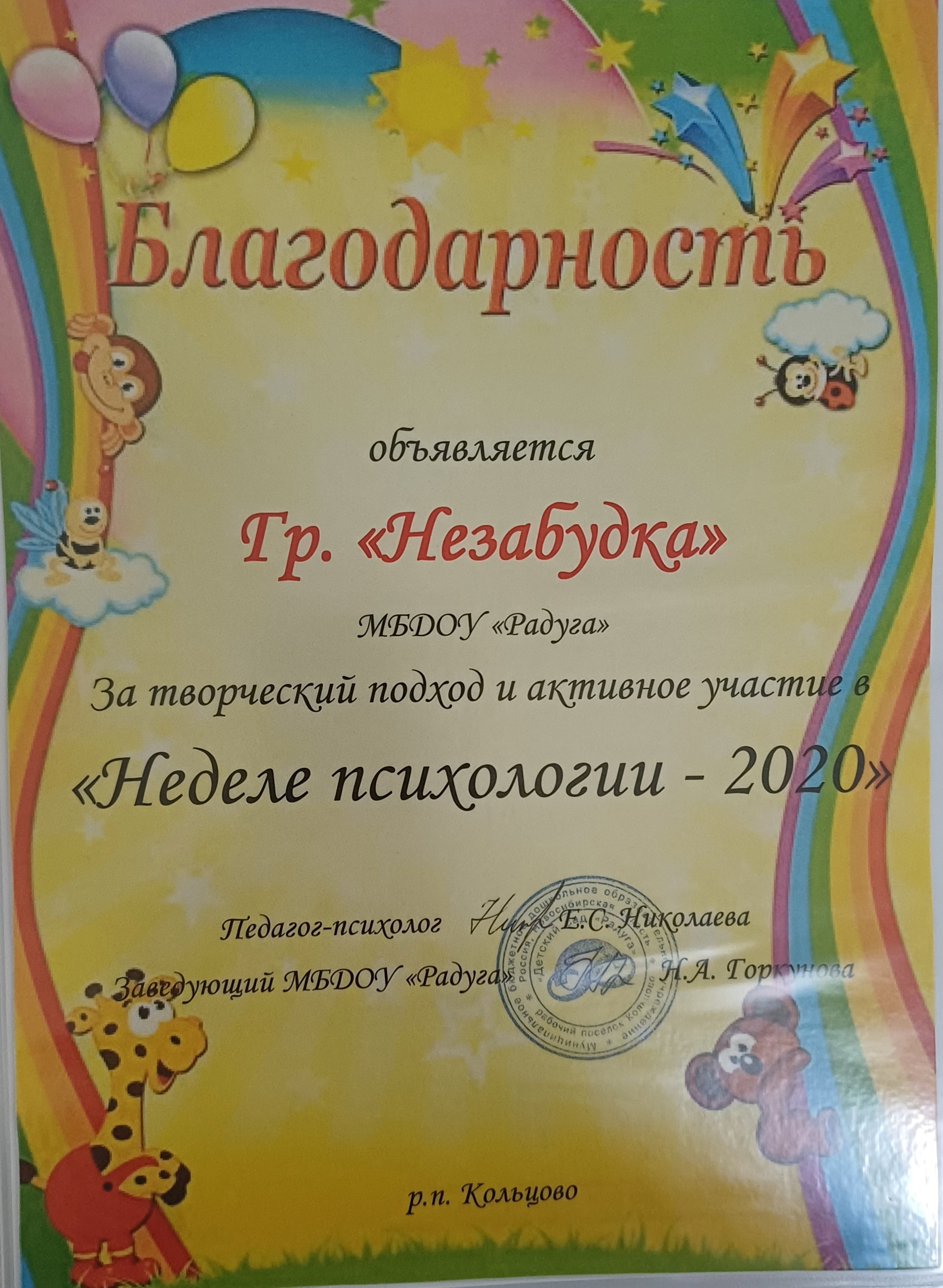 Благодарность за творческий подход и активное участие в "Неделе психологии - 2020"